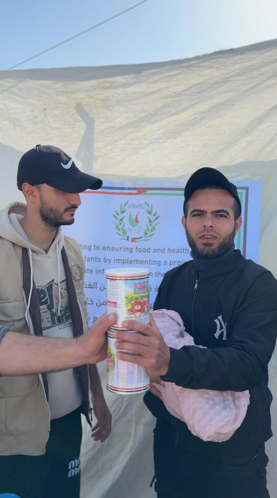 بفضل تبرعاتكم، تمكنت جمعية أماني من الوصول إلى عدة مناطق، منها مخيم فارس المصري ومخيم إيواء المالية في تل الهوى. إن كل علبة حليب نوزعها هي « قطرة أمل تنقذ أطفالنا من الجوع ومن ويلات الحرب ».